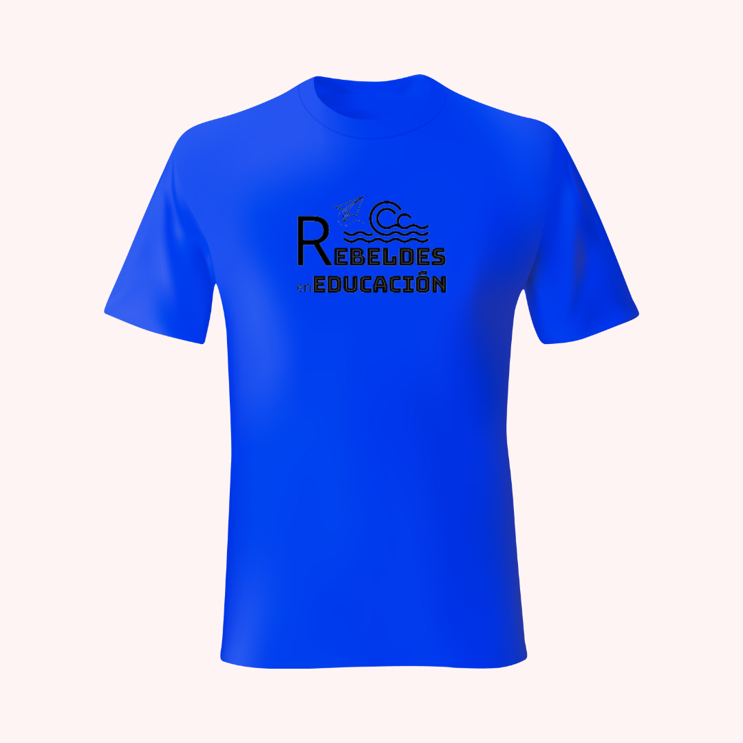 Demuestra tu espíritu rebelde en el ámbito educativo con nuestra camiseta exclusiva, disponible en tres colores (blanco, azul eléctrico y azul claro) con el icónico logo de Rebeldes en Educación. Fabricada con algodón suave y de alta calidad, esta camiseta te ofrece comodidad durante todo el día. El diseño minimalista y elegante del logo destaca tu pasión por la innovación y la transformación en la educación. Ya sea que la uses en el aula, en eventos educativos o en tu tiempo libre, esta camiseta es una declaración de tu compromiso con un enfoque educativo audaz y vanguardista. Únete al movimiento de Rebeldes en Educación y deja tu huella con estilo